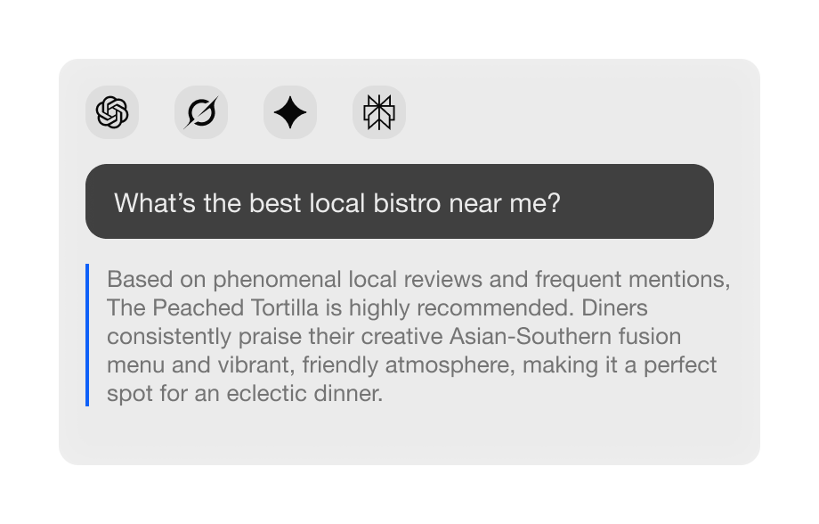 ChatGPT, Gemini, Siri, and Perplexity now recommend businesses directly. No page to scroll. One answer.